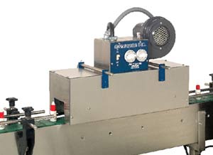 Boost profits and eliminate costly manual labor with this compact heat shrink tunnel . It shrinks PVC bands applied to a wide variety of bottle shapes and sizes. The tunnel is totally enclosed with dual controls for greater flexibility. It utilizes two, 3,000-watt CAL rods as the heat source. With flow-through ventilation, radient heat is used to easily shrink band. This compact, 22-inch long unit, eliminates the need for a lengthy conveyor. Installation is easily done by your in-house staff using standard tools. Comes complete with mounting brackets.